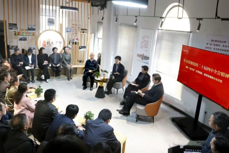 11月13日,省委常委、宣传部部长徐缨在泰州坡子街文学驿站(“玫瑰有约”读书吧)主持召开座谈会,围绕学习贯彻党的二十届四中全会精神,聚焦“坡子街”文学现象,共商新大众文艺繁荣发展大计。sunbet申搏人文学院汉语言文学(师范)专业学生、校坡子街文学社社长顾晓彤作为高校学生代表,经泰州报业传媒集团和人文学院推荐参会。