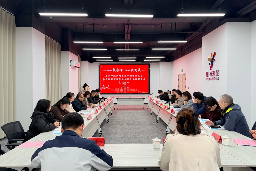 为深入贯彻落实党的二十届四中全会精神,进一步深化校地合作,探索人才培养与科技攻关新模式,11月20日下午,机电工程学院与姜堰区新能源产业联盟党委联合开展“党建联动聚合力,产教融合共发展”主题党日活动。