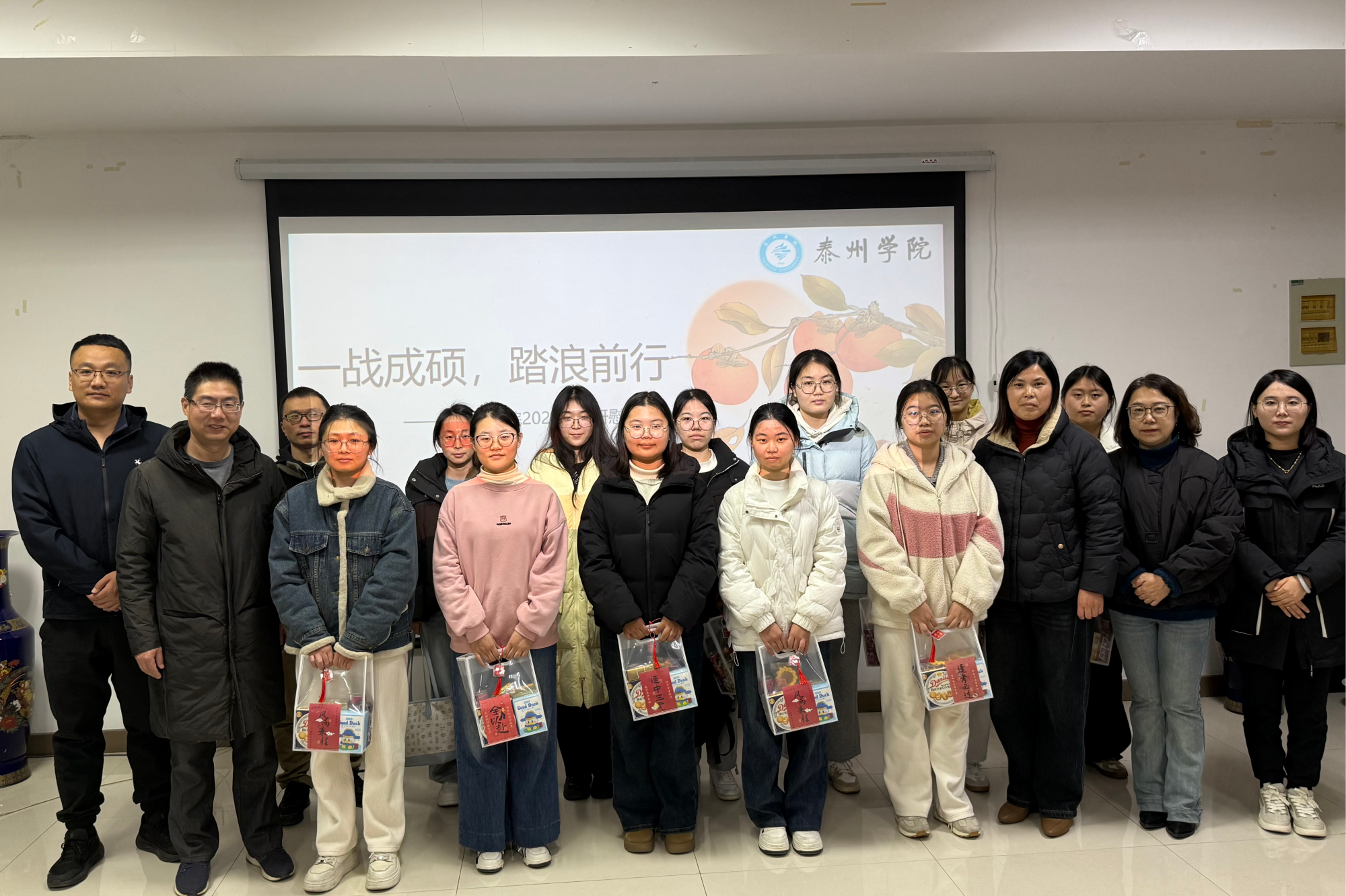 活动尾声,老师们将学院精心准备的“考研礼包”发放到考研学子手中。