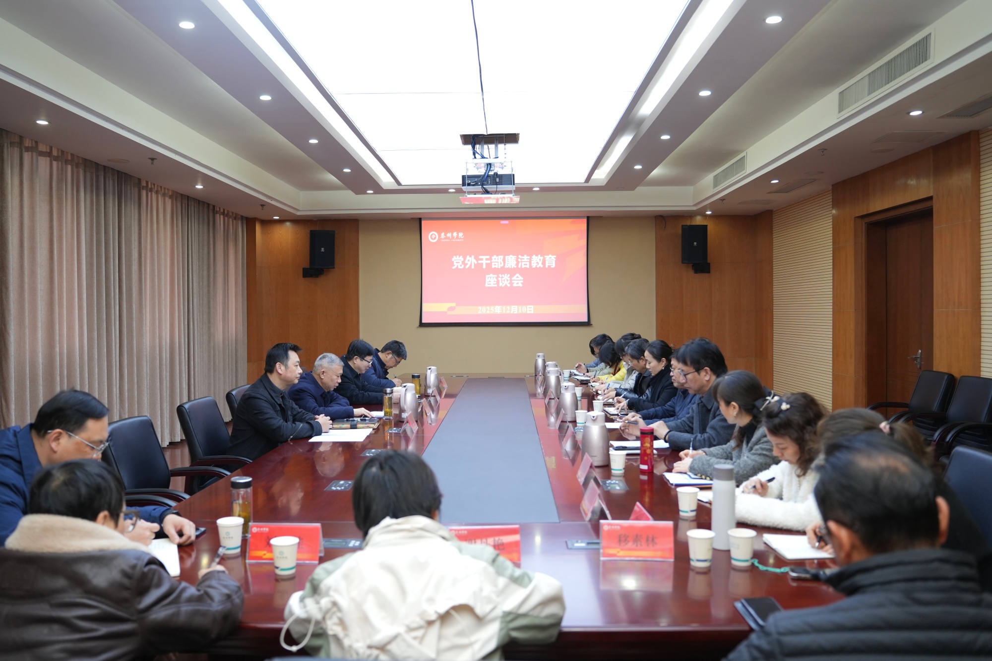 为深入学习贯彻二十届中央纪委四次全会精神,进一步强化党外干部的廉洁自律意识,筑牢拒腐防变的思想防线,营造风清气正的校园政治生态,12月10日上午,sunbet申搏在明达楼D1505会议室召开党外干部廉洁教育座谈会。校党委副书记徐庆国出席会议并讲话,校党委常委、纪委书记何军主持会议。党委统战部、纪委办公室负责同志,党外干部、各民主党派、无党派人士代表等参加座谈。