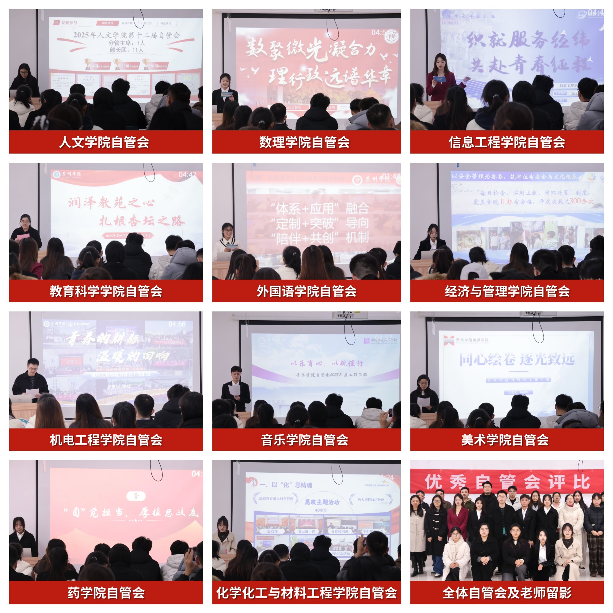 经展评,经济与管理学院以“经略善治,管领未来”的精准定位、数理学院以“数聚微光凝合力,理行致远谱华章”的理性担当、信息工程学院以“织就服务经纬,共赴青春征程”的细致服务赢得评委一致认可,获评本年度优秀自管会。