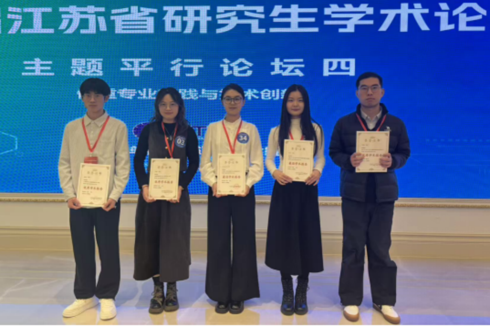 12月24日,由江苏省学位与研究生教育学会主办,南京邮电大学等单位承办的第二届江苏省研究生学术论坛在南京成功举办。sunbet申搏联合培养的5名研究生凭借扎实的科研功底、清晰的逻辑表达和出色的现场表现斩获佳绩,其中张天水、卡地尔娅・阿山两位同学荣获最佳学术报告奖,刘成建、宋梦伟、张泊羽三位同学荣获优秀学术报告奖。