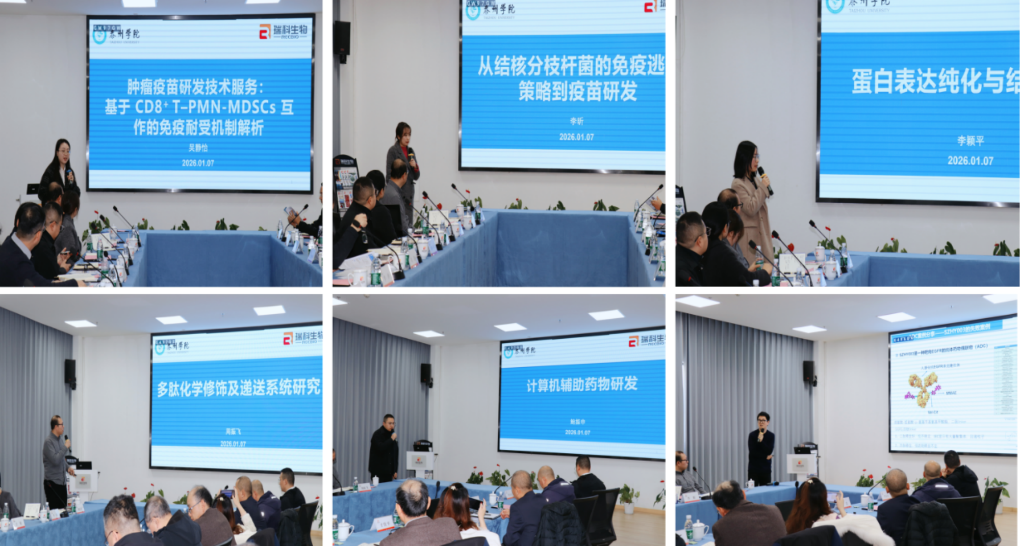 药学院张鑫等6名博士结合自身研究方向,围绕生物医药领域的前沿技术、科研成果及应用前景依次进行学术交流汇报,充分展现了药学院教师在生物医药领域扎实的科研功底和鲜明的研究特色,为双方后续在疫苗领域的科研合作奠定了基础。