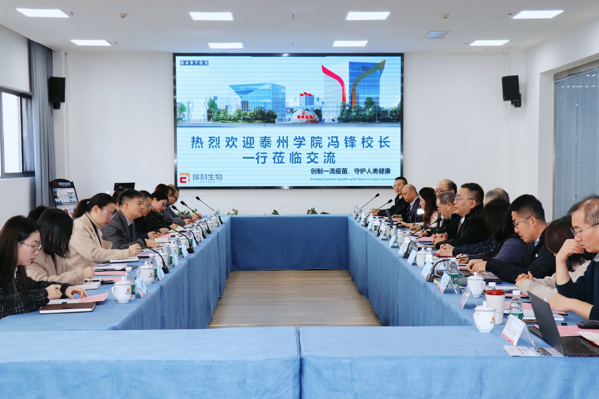 为深入贯彻落实“三融三促”校城共兴计划,深化产教融合、校企合作。1月7日,校长冯锋带领科研处、药学院主要负责人及骨干教师,赴江苏瑞科生物技术股份有限公司开展学术交流合作活动,旨在搭建校企协同创新桥梁,共探生物医药领域合作新路径。