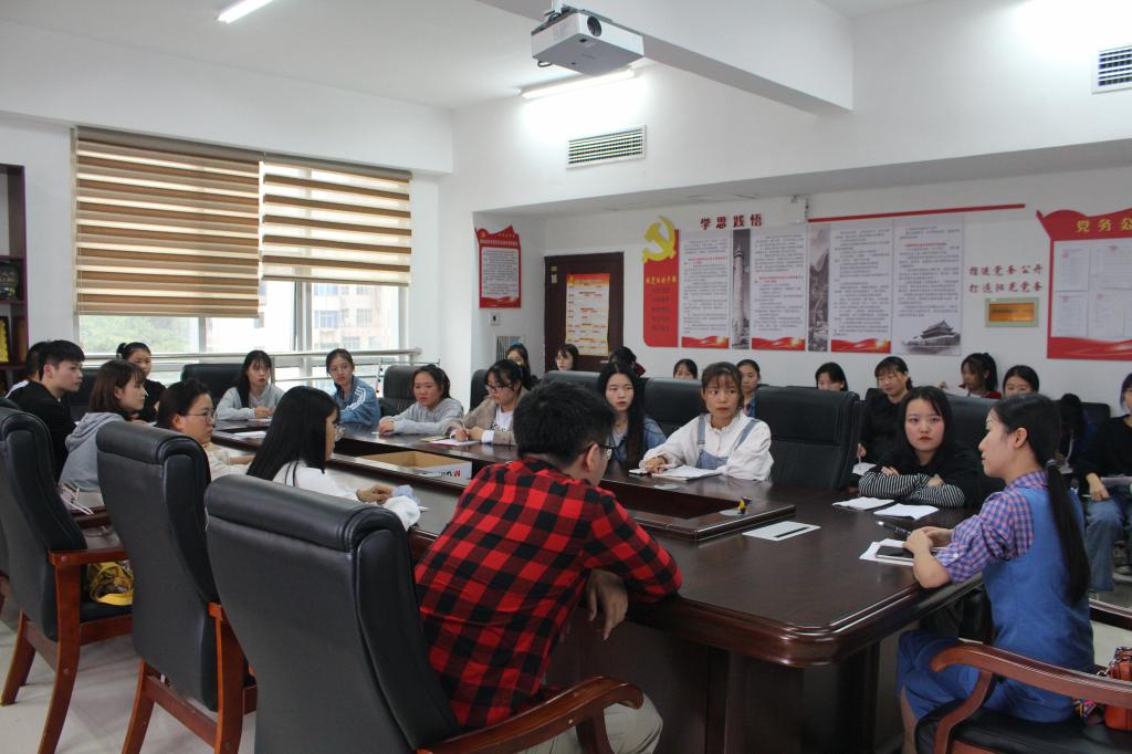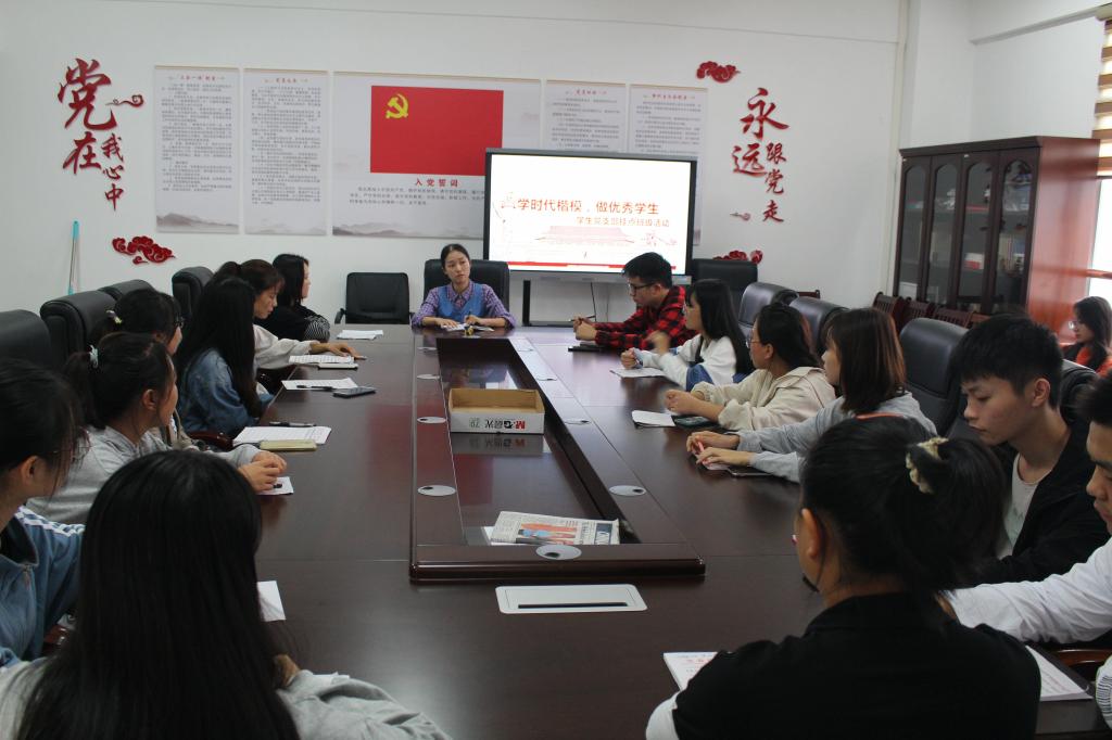 本站讯(国际教育学院 周沫利 学生记者 欧阳怀玉)为提高我院学生的思想道德素质,在我院营造知荣辱、争优秀的良好风气,国际教育学院学生工作党支部于9月25日下午3:50,在科技综合楼开展以“学时代楷模,做优秀学生”为主题的支部挂点活动。此次活动由我院学生工作支部党员周沫利主持开展,共计29位入党积极分子和各班优秀团员代表参与此次活动。
