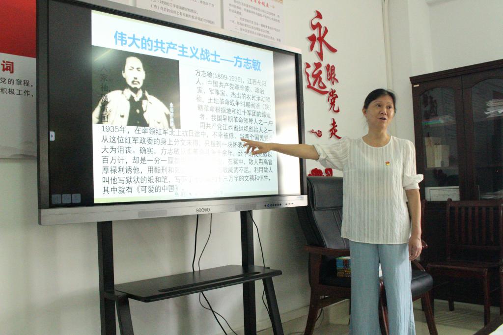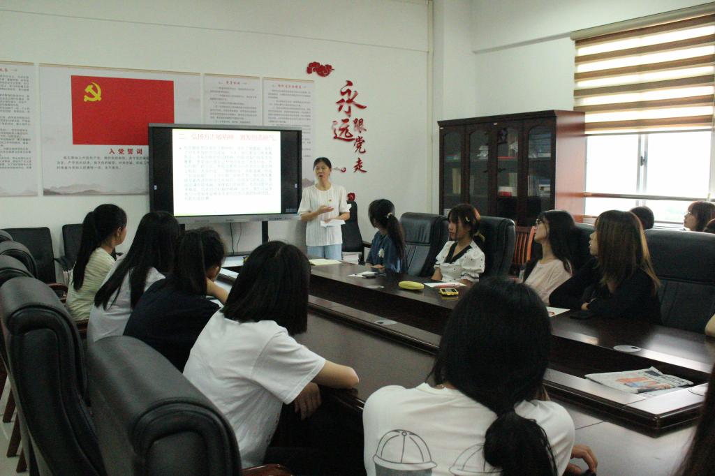 本讯站(国际教育学院 周沫利 学生记者 付凯芸)为有效促进红色基因在青年学生中的传承,有力加强对学生的爱国主义教育,国际教育学院教师党支部于9月15日下午4:00在科技综合楼401会议室开展支部挂点活动,活动以党课形式开展。教师支部韩菁同志为主讲人,她以“弘扬方志敏精神,续写红色新篇章”为主题,为我院来自16(高)、17(高)、19(高)等年级英语教育班的班长、团支书、学生代表,以及我院部分入党积极分子、优秀团员上了一堂精彩的党课。