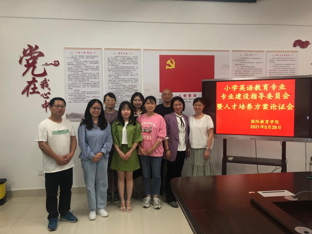 本站讯(国际教育学院 颜灵仪)为了落实职业教育专业动态更新要求,推动专业升级,提升专业建设水平,根据学校进一步完善人才培养方案的要求,国际教育学院于5月28日下午在科技综合楼401会议室,召开了小学英语教育专业专业建设指导委员会会议暨人才培养方案论证会。会议由国际教育学院副院长肖勇主持,院长韩菁、院党总支书记刘海云、小学英语教育专业专业建设指导委员会成员参加。会议邀请了9778818威尼斯附属小学英语教师许华荣、湖田镇林田小学校长刘梦瑶、湖田小学英语教师陈咏等参与研讨。