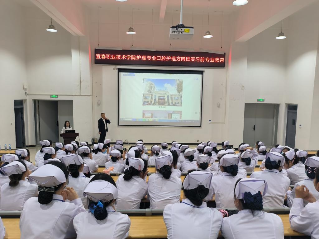 本站讯(护理学院 黄芳)为进一步做好护理学院口腔护理方向班实习生动员及就业教育工作,近日,护理学院邀请宜春振兴口腔医院院长邱振兴来学院开展实习前专业教育讲座,宜春振兴口腔医院副院长苏兰萍、总护士长刘国玲、护士长杨金,护理学院副院长易国萍、护理专业负责人黄芳及108位学生参加讲座,讲座由易国萍主持。