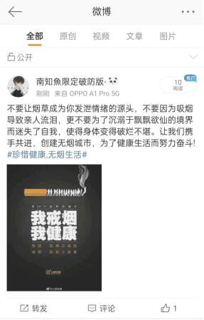 本站讯(护理学院 官文芳)为强化政治方向和思想引领,凸显正确的价值使命,提升学生的人文综合素养,培养良好的护理职业道德和现代护理理念,塑造具有社会主义核心价值观的护理人才,近日护理学院临床党支部、内科护理教研室联系班级拓展第三课堂,组织学生利用网络平台(微信、抖音、微博等)开展劝导戒烟活动。
