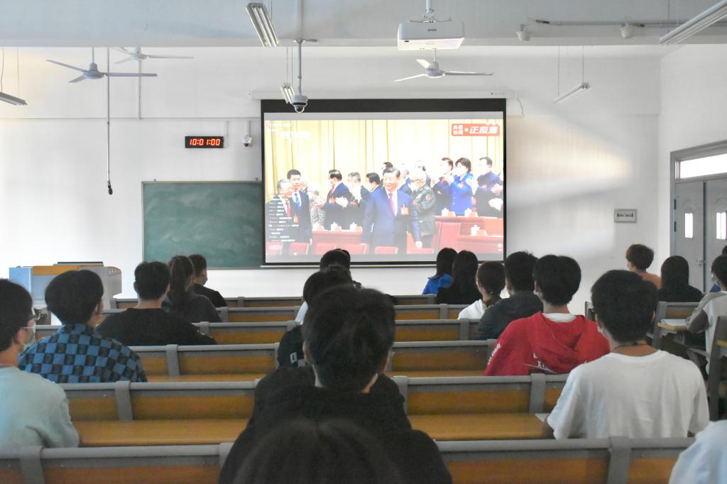 本站讯(信息工程学院 易文意 学生记者 刘洋)10月16日上午,中国共产党第二十次全国代表大会在北京人民大会堂隆重开幕。信息工程学院全体师生分别在党员活动室、教室集中观看党的二十大开幕会盛况。。
