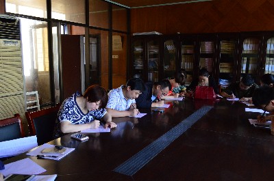 在党员活动室里,党总支书记韩海荣首先带领全体党员重温了入党誓词。他指出全体党员要在系列学习教育活动中进一步加强对党的宗旨的学习和领悟,深化党性意识。随后在各支部书记的带领下,全体党员通过手抄的方式将入党誓词牢记于心中。