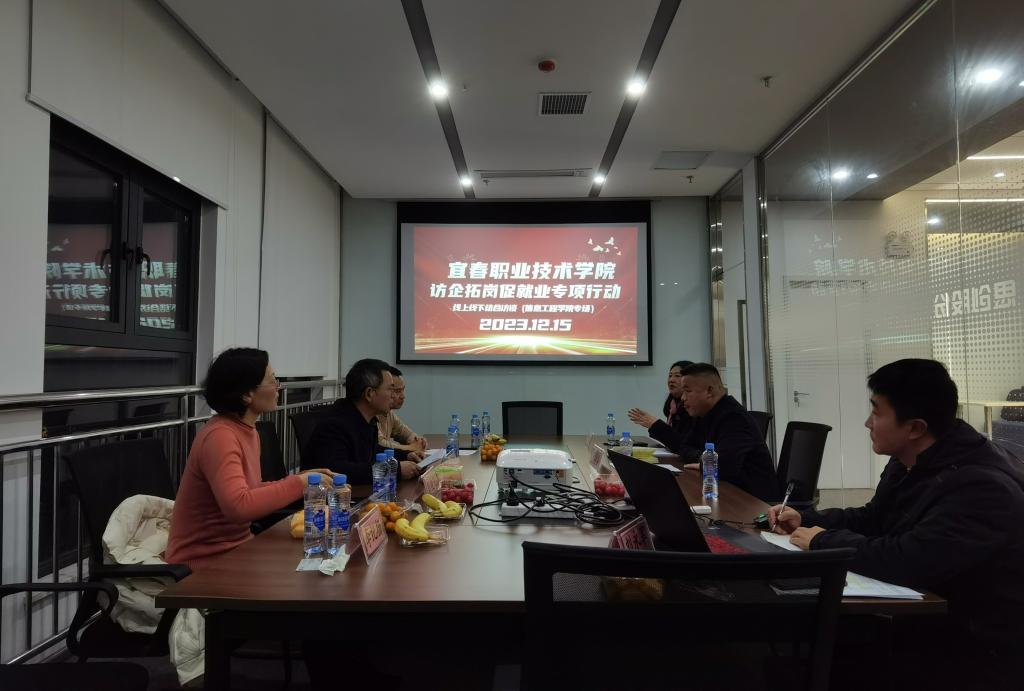 本站讯(信息工程学院 李纪杨)为落实党中央和省委省政府关于高校毕业生就业的相关决策和部署,进一步拓宽就业渠道,挖掘岗位资源,促进2024届毕业生更充分、更高质量就业,12月15日下午,副校长张印华带领招生就业处处长彭艳飞,信息工程学院党总支书记罗来曦、院长简靖韡等一行人前往宜春大数据产业园开展访企拓岗活动。