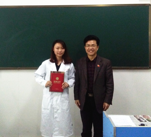 颁奖典礼上,杨云山向各位获奖选手表示了热烈的祝贺,同时希望同学们能充分发扬“工匠精神”,在实习和工作岗位上继续勤学苦练,实现技能报国。杨云山、刘军及医学院领导共同为获奖选手颁奖并合影留念。