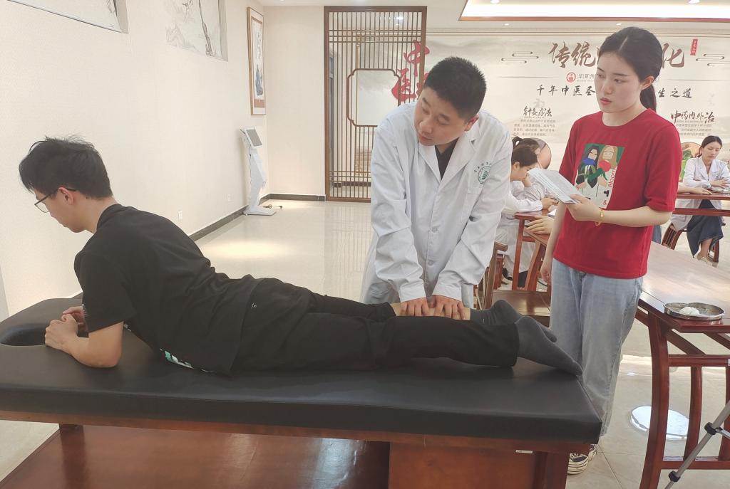 本次开放课堂的主题为艾灸与经络养生,授课语言为中文和英文,充分展现了中医康养之神奇。康复治疗技术专业的宁松兵老师介绍了艾灸在中医康复和养生保健领域的独特功效,并现场指导学生们制作艾条。随后,他使用艾条在人体四个穴位上施治,展示艾灸在温经通络、散寒祛湿、补养气血方面的疗效。刘佳老师阐述了中国传统医学的整体观念以及经络系统的组成。接着,在宋思清老师的协助下,刘佳示范了利用经络腧穴对常见病症的体表治疗,并教授如何利用同身“寸”法,在患者体表找到相应的穴位进行按揉刺激、促进气血运行,以达到养生保健的功效。
