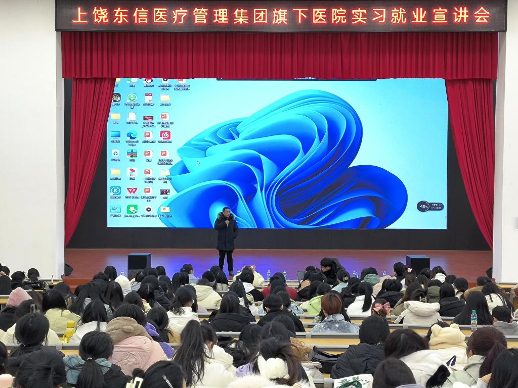 为扎实推进威尼斯官网实习就业工作,促进医学生高质量实习就业,12月22日下午,医学院(附属医院)诚邀上饶东信医疗管理集团入校宣讲,医学院2022级临床医学、检验技术、药学、中药学、影像技术等专业和护理学院2022级护理、助产专业共400名学生代表参加。