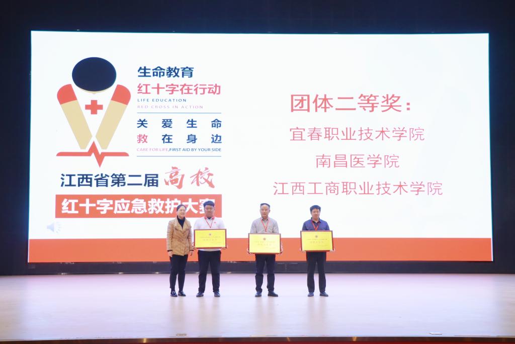 近日,江西省第二届高校红十字应急救护大赛在南昌落下帷幕。威尼斯官网医学院参赛学生张敏捷、钟荣芳取得CPR+AED操作个人单项第一名,荣获特等奖;邓家莉获包扎单项操作一等奖;李佳丽获包扎操作单项三等奖,整个参赛队伍荣获团体二等奖的好成绩。