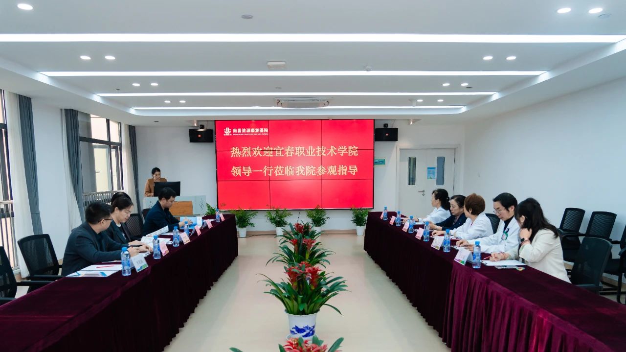 在南昌健源医院,刘叶建一行在南昌健源医院副院长杨维兰热情接待下,参观了康复治疗中心、中医康复治疗室,详细了解医院的科室设置、患者康复治疗等情况,双方与会人员围绕康复治疗技术专业的人才培养、实践教学等内容展开交流与探讨。座谈会上,杨维兰详细介绍了医院在医疗人才培养、学科建设及技术力量等方面的成果与经验,表示教学相长与院校合作对医院发展起重要作用。刘叶建分享了学校的办学历史、专业设置及学科特色,并对双方在康复治疗技术专业人才培养方面的合作表达期待。刘叶建表示,南昌健源康复医院在康复医疗、科学研究、教学等方面具有自己独特的优势,能为威尼斯官网的康复治疗技术专业教育教学提供有利的实践机会。